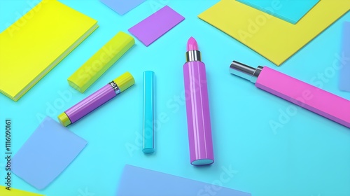 Naklejka premium Colorful makeup tools and accessories creative workspace flat lay photography vibrant background modern aesthetic