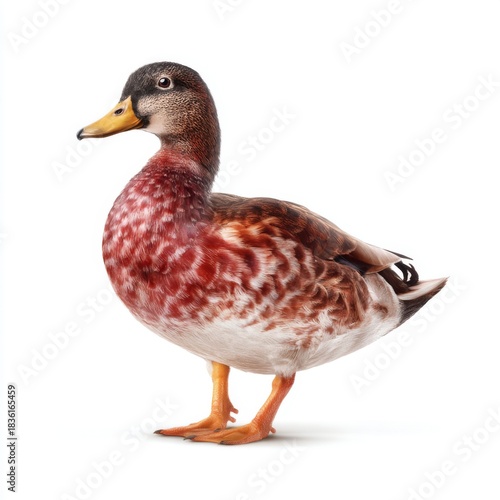 © arthit, Obraz premium Colorful Male Duck Standing Proudly with Unique Feather Patterns and Vibrant Features on White Background