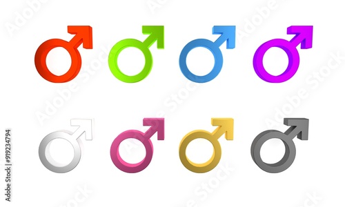 © Oksana, Fototapeta premium Colorful Male gender symbol icon isolated on white background. Minimalism concept. 3D render illustration