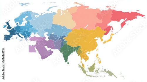 Naklejka premium Colorful Map of Asia and Surrounding Regions with Geographic Divisions