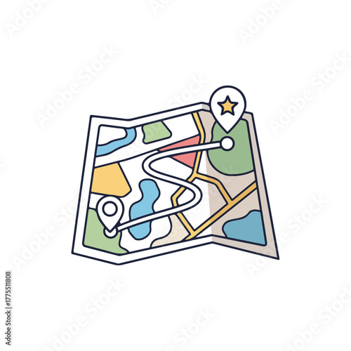 © Irfan Mulyana, Fototapeta premium Colorful Map with Star Marker and Route for Navigation