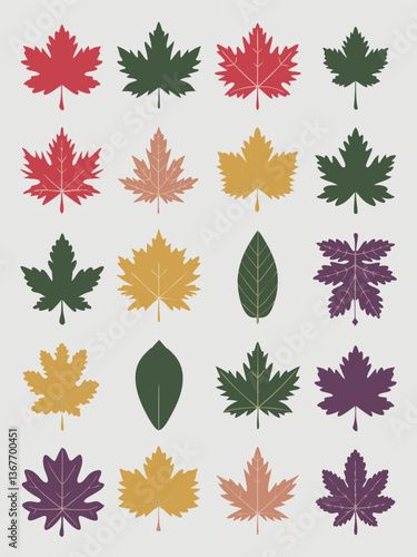 Fototapeta premium Colorful Maple and Oak Leaves in 3x3 Vector