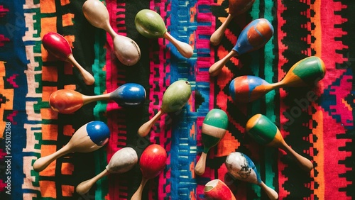 Fototapeta premium Colorful Maracas on a Vibrant Mexican Blanket