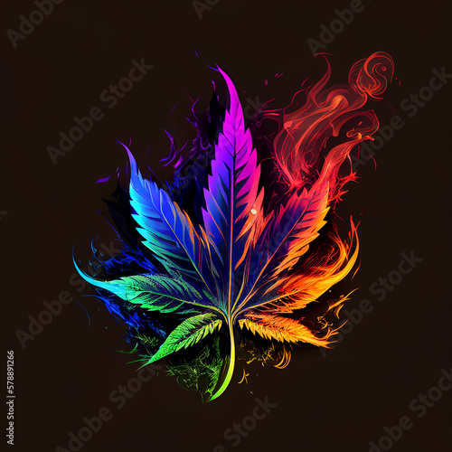 © Paulina, Naklejka premium colorful marijuana leaf for cbd hemp oil advertising, generative AI