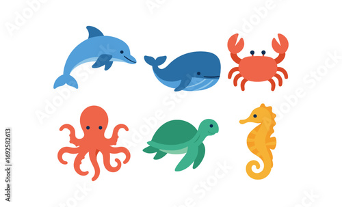 Obraz premium Colorful marine life collection: ocean animals glowing in soft gradient glow
