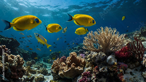 © Muqadas , Naklejka premium Colorful marine life painting with fish and waves