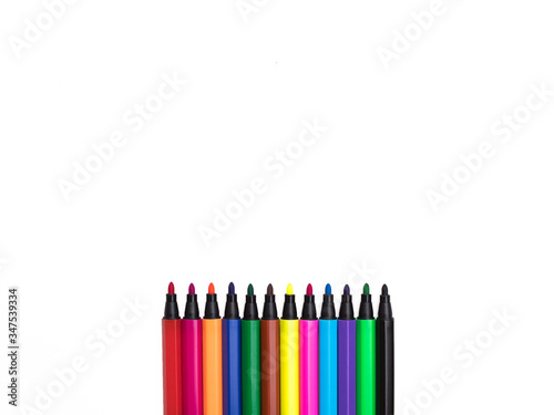 © Ken, Fototapeta premium Colorful marker pen set on white background.
