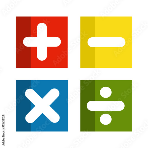Fototapeta premium Colorful math symbol sign. Addition subtraction, multiplication, division. Education, school learning concept. Flat vector design isolated illustration.