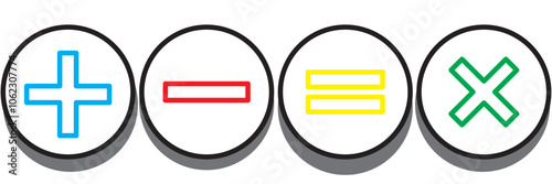 © Franco, Obraz premium Colorful math symbol sign sticker set. Education, school learning, mathematic concept. Flat vector design illustration isolated on background.