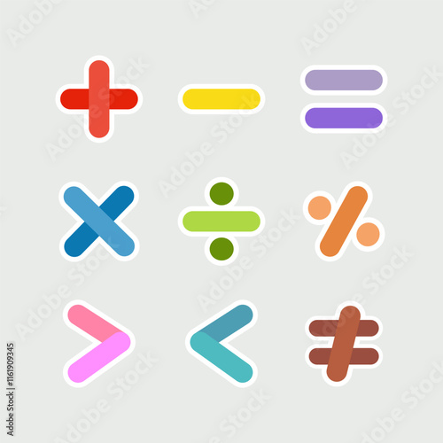 © Charlottstudio, Obraz premium Colorful math symbol sign sticker set. Education, school learning, mathematic concept. Flat vector design illustration isolated on background.
