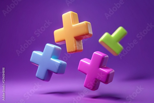 © Four888, Obraz premium Colorful Math Symbols Floating on Purple: Basic Arithmetic Learning Concept
