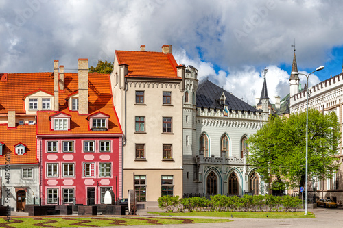 © Ints, Naklejka premium Colorful medieval houses in the Livu Square, Riga Old Town, Latvia