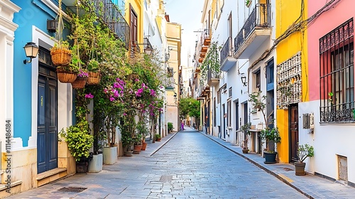 © Kawula, Fototapeta premium Colorful Mediterranean Street Scene With Vibrant Flowers