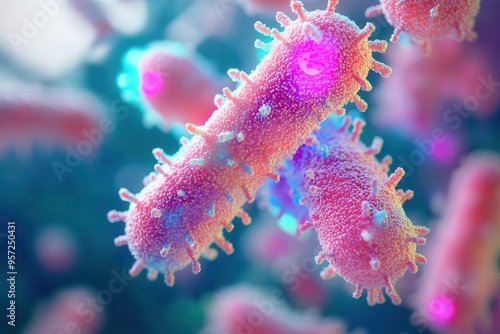 Fototapeta premium Colorful microscopic view of bacteria, showcasing vibrant structures and...