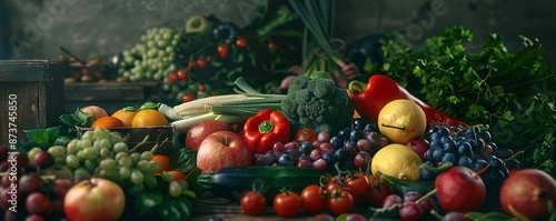 © Studicon, Fototapeta premium Colorful mix of ripe fruits and vegetables.