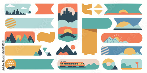 © jesmin, Naklejka premium Colorful Modern Vector Banner Design with Abstract Geometric Shapes and Vibrant Colors