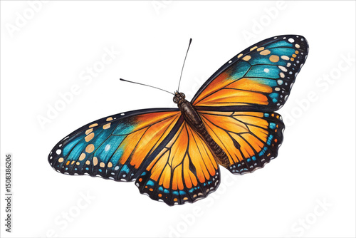 © sabbirdesignpro, Fototapeta premium Colorful Monarch Butterfly Isolated on White Background