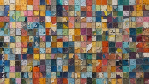 Fototapeta premium Colorful Mosaic Tile Pattern Creating an Abstract Artwork with Vibrant and...
