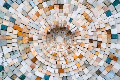 Fototapeta premium Colorful mosaic tile pattern with concentric circles