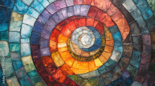 Fototapeta premium Colorful mosaic tiles creating a stunning spiral pattern