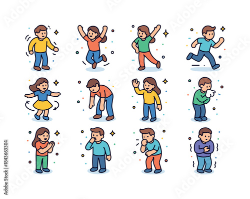 © Coosh448, Naklejka premium Colorful Motion Icons. Physical Motion. Colorful isometric vecto