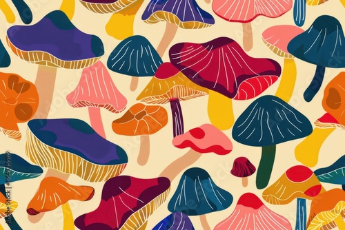 © payula, Naklejka premium Colorful Mushroom Pattern