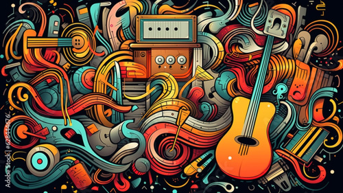© Ahmad Soleh, Obraz premium Colorful musical doodle background