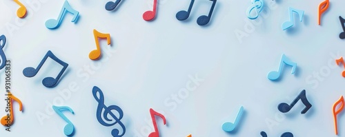 Fototapeta premium Colorful musical notes scattered on a light background, perfect for...