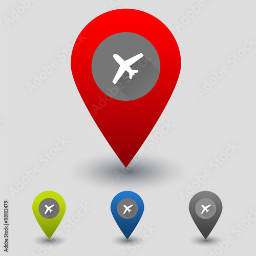 Obraz premium Colorful navigation signs with flat plane icon vector