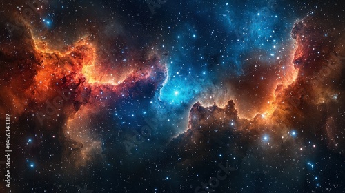 © mlangsen, Naklejka premium Colorful nebula against the star filled darkness