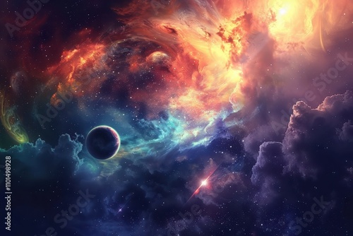 Fototapeta premium Colorful Nebula and Glowing Planet in Deep Space