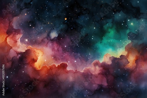 Naklejka premium Colorful Nebula and Starry Night Sky Watercolor