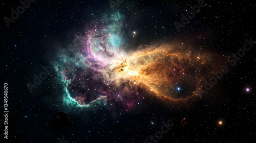 Fototapeta premium Colorful Nebula Glowing With Swirling Dust And Brilliant Stars Against Dark...