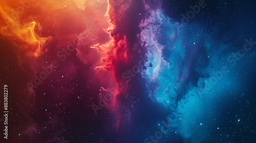 Fototapeta premium Colorful nebula in space with stars, smoke, fog, and dust
