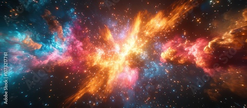 Fototapeta premium Colorful nebula with bright stars in the center.