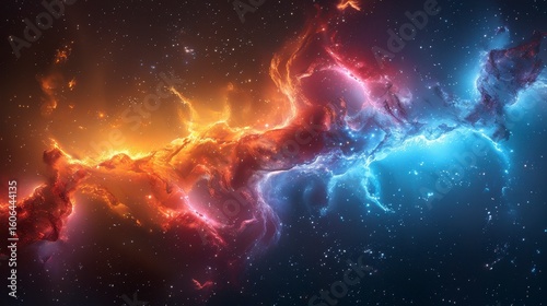 Obraz premium Colorful nebula with orange fire and blue ice-like clouds