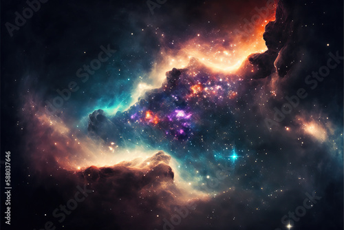 Fototapeta premium Colorful nebula with stars. Fantasy galaxy generative AI background
