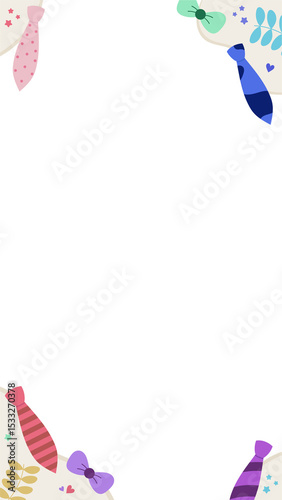 © vectorfusionart, Fototapeta premium Colorful neckties and bows are forming frame around center, transparent background, copy space