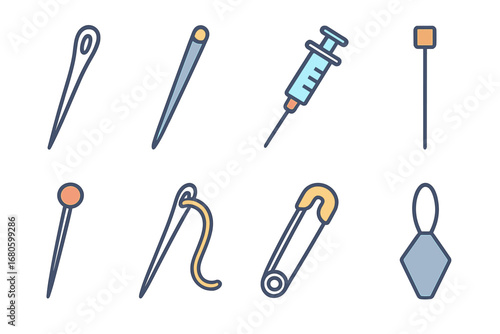 Naklejka premium Colorful Needle Illustrations. vector mini-illustrations needle in colors...