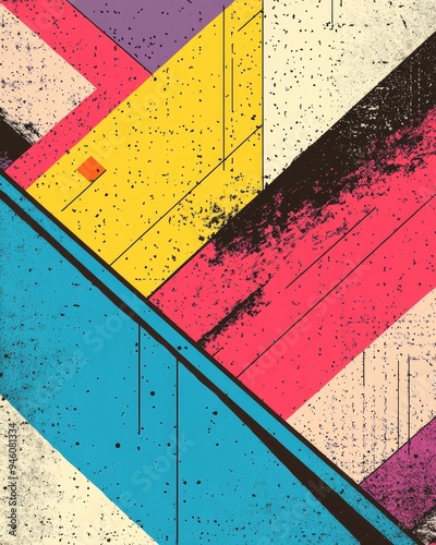 © Taras Vykhopen, Naklejka premium Colorful Neo Brutalism poster showcasing dynamic lines and textures in vibrant geometric patterns