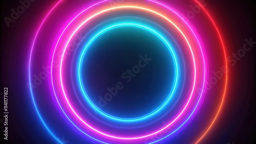 © Nasnunt, Obraz premium Colorful neon circle render seamless loop motion background, neon, circle, abstract, seamless, loop,render, futuristic