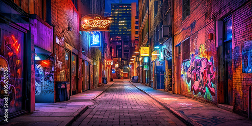 © Iman, Fototapeta premium Colorful Neon Graffiti Alleyway at Night