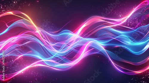 © Nenone, Obraz premium Colorful neon light effect wave dark background.