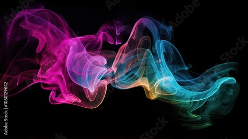 © Isolated studio, Obraz premium Colorful Neon Smoke Swirls Against Black Background