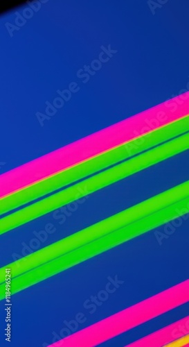 © IbragimovN, Fototapeta premium Colorful neon stripes on blue background - modern abstract design