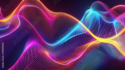 Fototapeta premium Colorful Neon Waves Flowing Through The Space Creating Light Patterns At Night