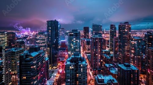 Fototapeta premium Colorful night city skyline abstract photography