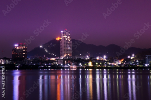 Fototapeta premium Colorful night view of Sriracha (Thailand) with modern city buildings