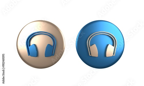 © Kostiantyn, Fototapeta premium Colorful Noise canceling headphones icon isolated on white background. Headphones for ear protection from noise. Circle button. 3D render illustration