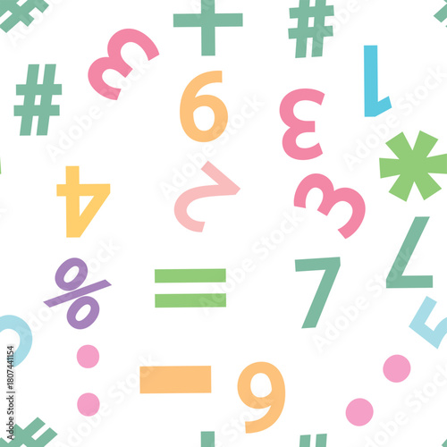 Obraz premium Colorful numbers, math symbols and formulas seamless pattern. Kindergarten,...